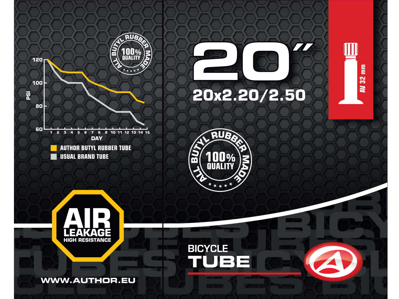Камера велосипедная AUTHOR 20" авто ниппель "широкая" 2,20-2,50 (50/62-406)