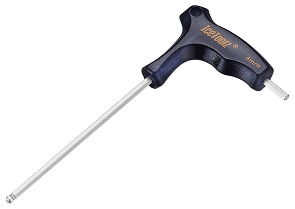тот шестигранный ключ IceToolz имеет эргономичную рукоятку и может использоваться с обеих сторон. Одна сторона 4-миллиметрового ключа имеет шаровидную головку, а другая, более короткая, — прямой шестигранник. Благодаря эргономичной рукоятке эти шестигранные ключи удобно держать в руке. Шаровидная/сферическая головка обеспечивает доступ даже к труднодоступным болтам. Артикул IceToolz для этого двухголовочного шестигранного ключа — 7M40.