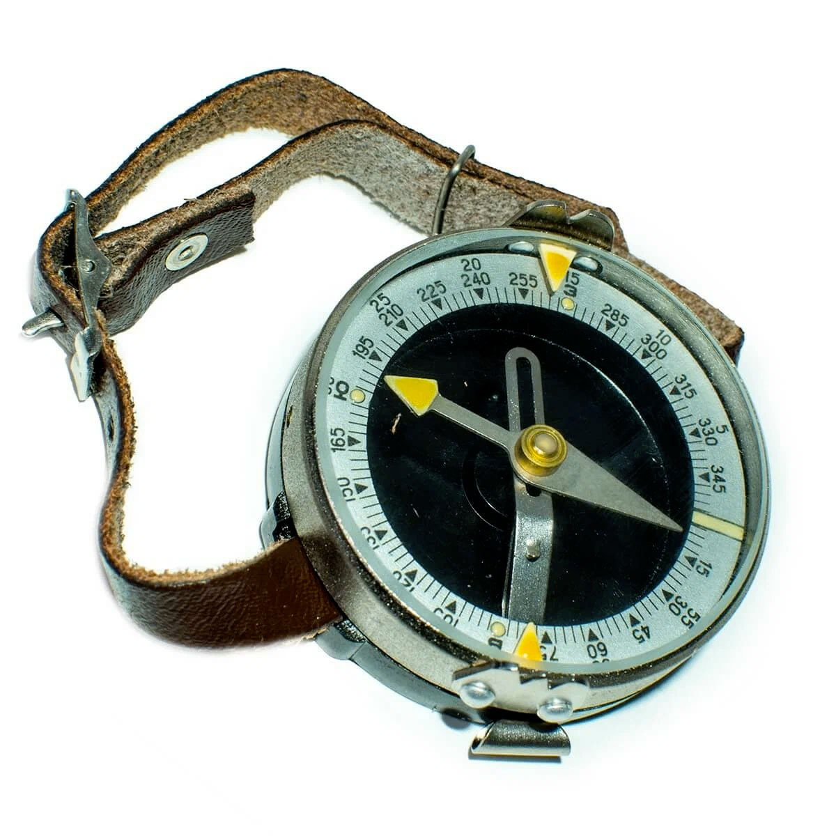 На руке компас Адрианова крепится как обычные часы, через кожаный ремешок. Металлический корпус защищает содержимое от повреждений. Благодаря подсветке из светящейся краски на циферблате, снимать показания с прибора можно в сумерках и ночью.