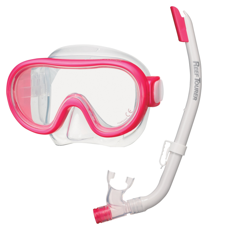 Удобный бюджетный комплект для плавания с сухой трубкой для детей и подростков 6-12 лет. Комплект подойдет и взрослым с узкими лицами.