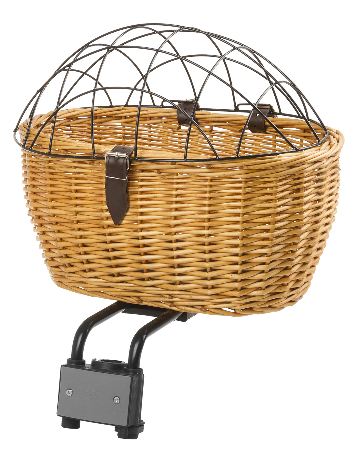Велосипедная плетенная корзина большого объема, предназначенная для перевозки животных. Она имеет особую конструкцию, основа сплетена из дерева, а крышка из стальной сетки. Благодаря такой корзинке, Ваш четырёхлапый друг сможет совершать увлекательные путешествия на велосипеде вместе с вами. Корзина легко и быстро крепится к велосипеду с помощью специального крепления и также легко снимается. Размеры корзины 43 х 30 х 22 см.