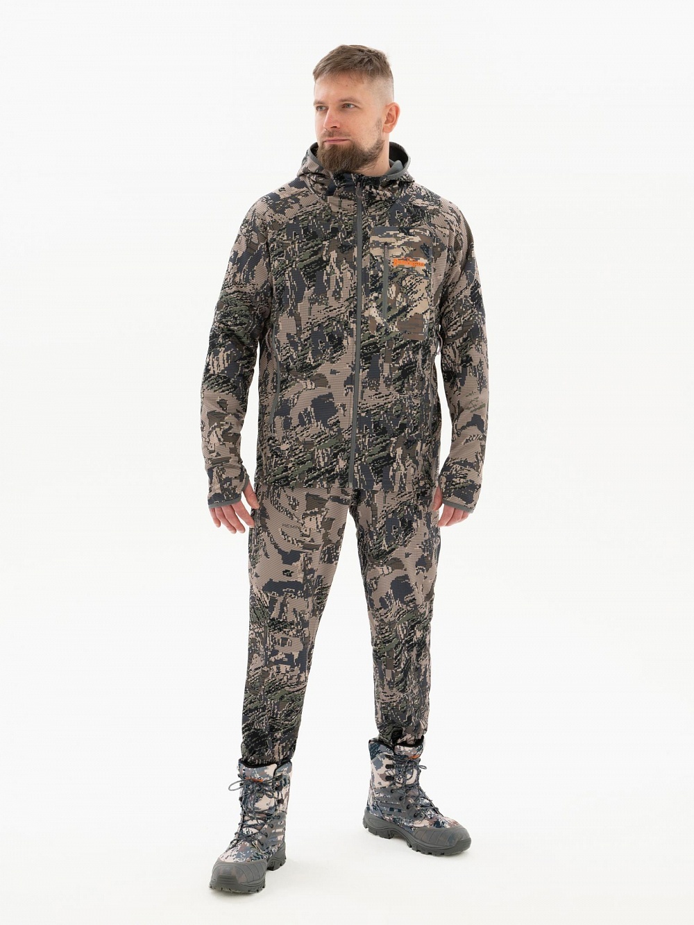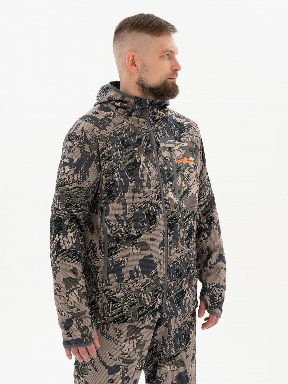 Костюм Remington Oreo Figure изготовлен из бесшумной ткани. Прекрасно подойдет для охоты или отдыха на природе. Наличие капюшона на куртке позволит обеспечить защиту от ветра и дождя. Внутренняя ветрозащитная планка на молнии станет дополнительной защитой от ветра. Плотное прилегание рукава обеспечивается резинкой, на рукаве имеется отверстие под палец. По низу костюма Remington Oreo Figure идет регулировка по объему кулисой. Мягкая флисовая подкладка на спине и внутри капюшона обеспечит сохранение тепла. Глубокие карманы в боковых швах позволят комфортно разместить руки, в брюках костюма также имеются 2 кармана в боковых швах. Благодаря наличию в поясе брюк резинки, обеспечивается хорошая посадка на различных типах фигуры, для дополнительной регулировки по объему в пояс вставлен шнурок. Манжета по низу брюк костюма Remington Oreo Figure обеспечит защиту от пыли и холодного воздуха.
