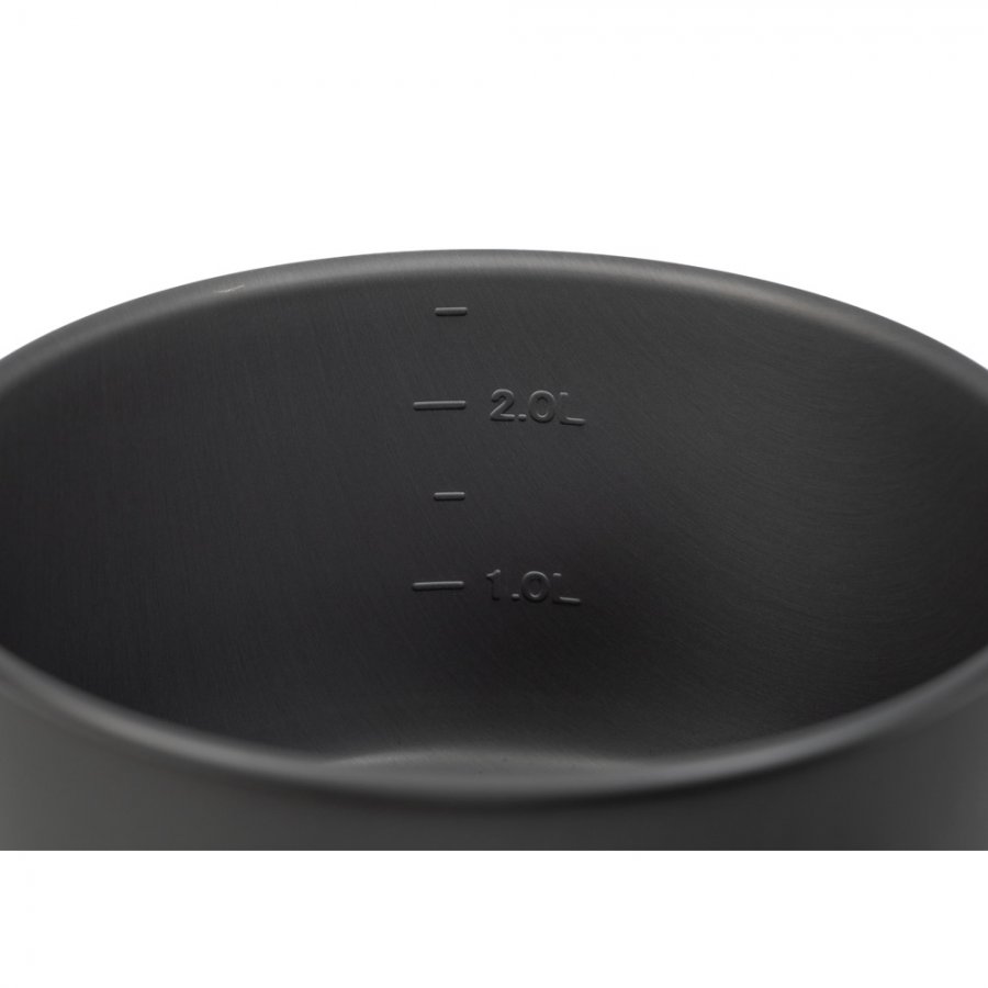Сделан из анодированного алюминия. Подходит для готовки на туристической горелке или плите.