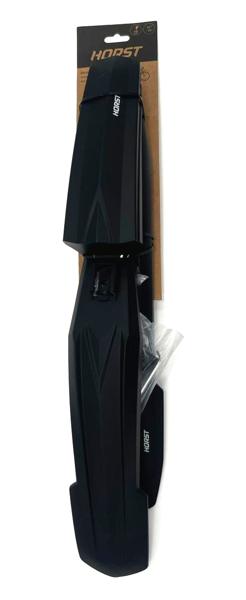 Комплект велосипедных пластиковых крыльев HORST для велосипедов с колесами диаметром 24-29". Устанавливается в рулевую трубу вилки и на подседельный штырь. Быстросъемное крепление крыльев. Крылья с резиновыми спойлерами. В первую очередь для горных велосипедов.