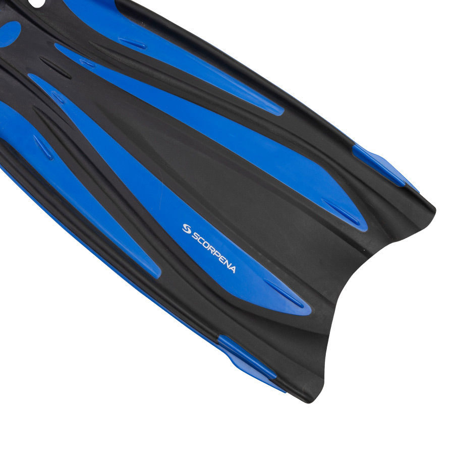 Гибкие вставки в лопастях и боковые рёбра жёсткости обеспечивают наиболее эффективную форму изгиба лопасти при гребке и направляя поток воды по оптимальной траектории, добиваясь стабильности гребка. Лопасть имеет так называемый «угол слома» по соотношению к плоскости стопы, который значительно снижает нагрузку на мышцы голени и стопы. Также, в основании лопасти имеются два отверстия, через которые вода вытекает, значительно облегчая энергию гребка. Это значит, что Вы сможете плавать в этих ластах гораздо дольше и меньше уставать при этом.