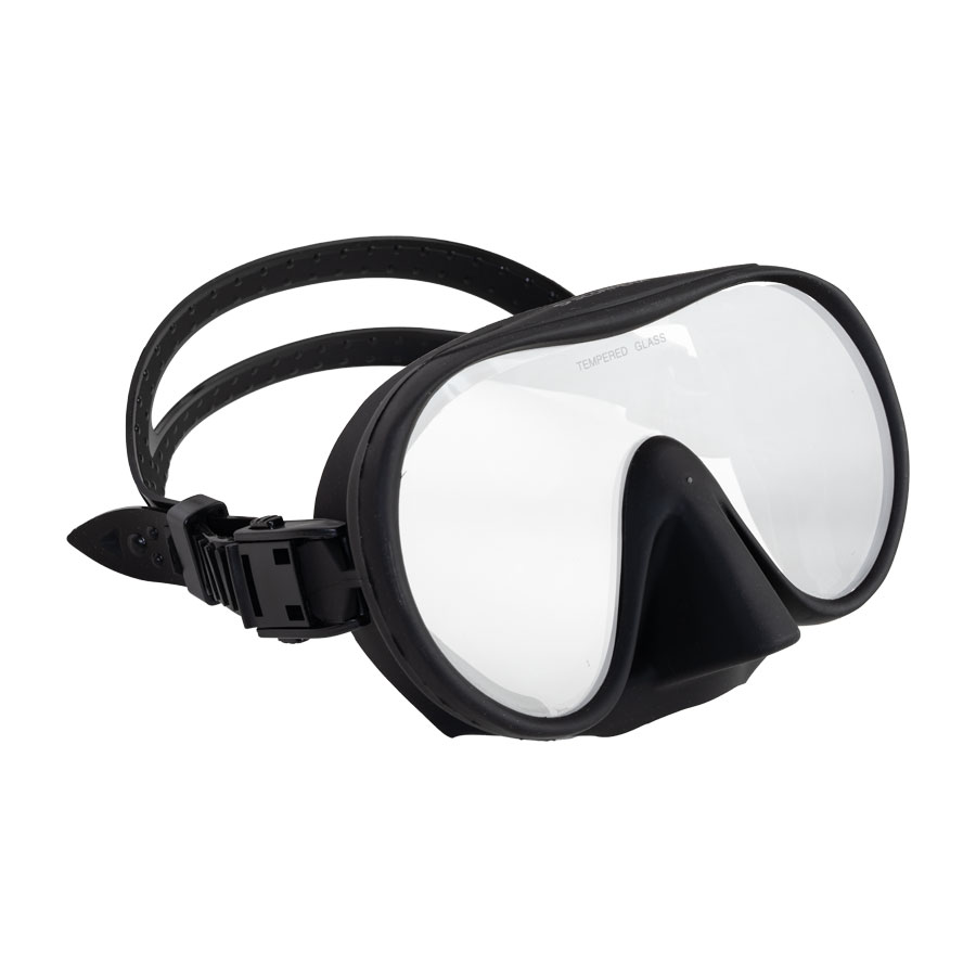 Закалённое моностекло этой маски расположено ещё ближе к глазам пловца, что увеличивает обзор и заодно уменьшает подмасочное пространство. Отсутствие пластиковой рамки уменьшает вес маски и делает её ещё более компактной.