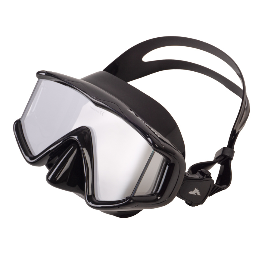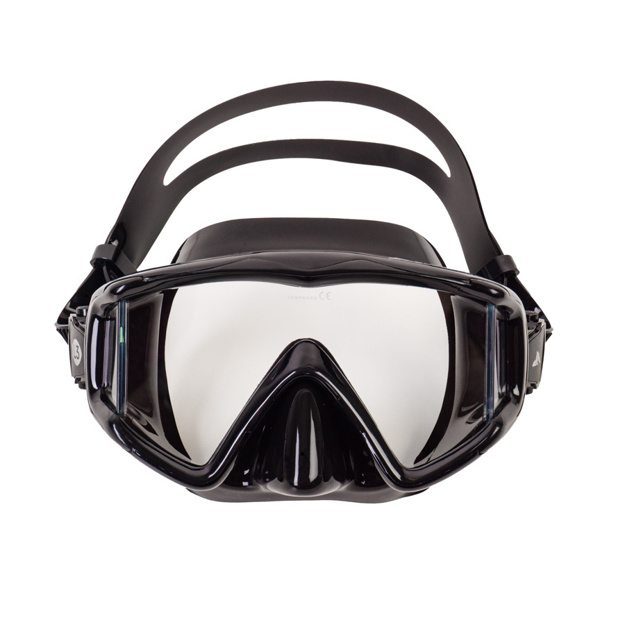 Маска обеспечивает широкое поле зрения за счет того, что стыки стекол практически незаметны для взора. Благодаря трехстекольной конструкции в этой маске отсутствует "тоннельный" эффект, поэтому находится под водой в этой маске становится более комфортно.