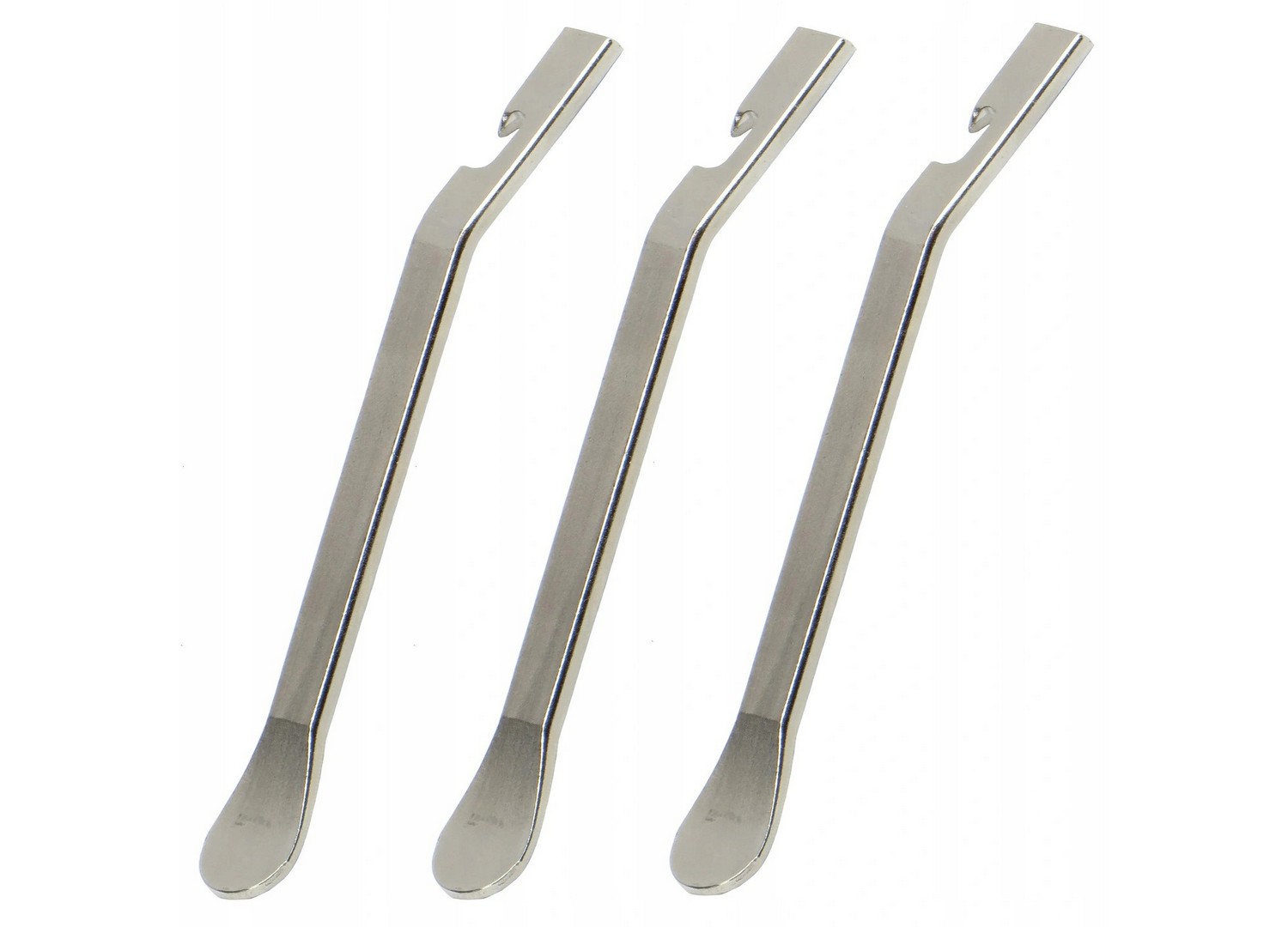 Стальные велосипедные монтировки с крючками от компании CYCLO. Монтировки применяются для демонтажа и монтажа покрышек с обода велосипедного колеса. Очень удобно при смене резины на зиму/лето или при проколе колеса. В комплекте поставки 3 длинные монтировки с крючками, можно и двумя демонтировать/монтировать покрышку, но тремя быстрее и удобнее.