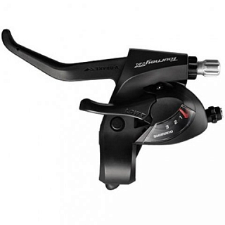 Шифтер/тормозная ручка Shimano Tourney TX800, 3 скорости, трос 1800 мм. SHIMANO TOURNEY TX EZ FIRE PLUS Shift/Brake Lever 3x8-speed - серия TOURNEY TX базовая для начинающих гонщиков на спортивных велосипедах. Комборучки SHIMANO TOURNEY TX EZ FIRE Plus оснащены функцией регулировки, смещения индекса SIS и дисплеем оптического привода, доступны в черном и серебристом цветах. Передние скорости 3. Тип совместимого тормоза V-BRAKE / Механический дисковый тормоз (МТБ). Размер ручки - под 2 пальца.