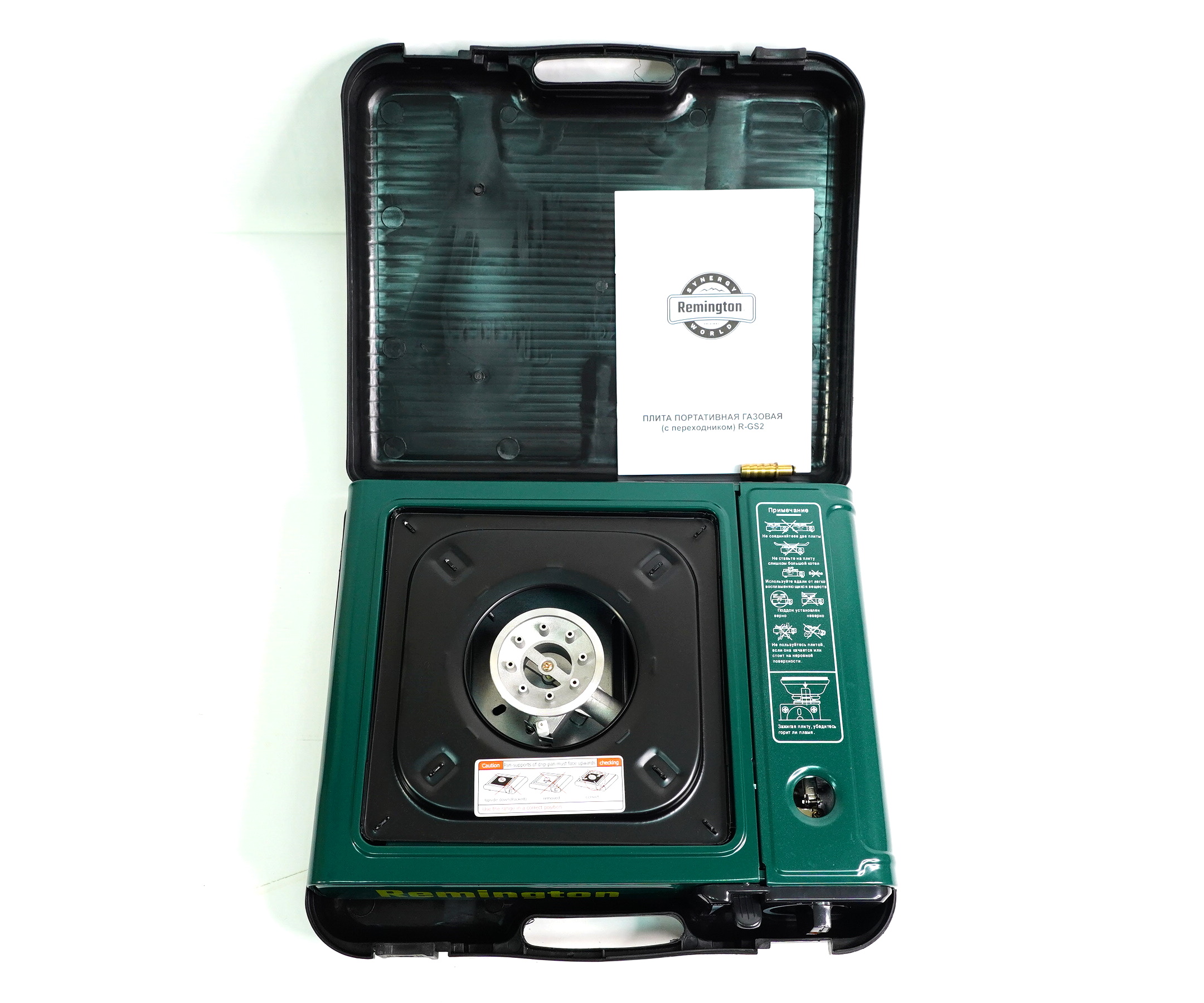 Газовая плита Remington BDZ 180A2 - легкая и портативная, подходит не только для домашнего использования, но и для кемпинга. Предназначена для приготовления пищи на охоте, рыбалке или в туристическом походе. Автоматическая защитная система прекращения подачи газа. Автоматическая система зажигания. За cчет малого веса и компактных размеров плита спокойно размещается даже в походном рюкзаке. Плита работает на одноразовых бутановых баллонах MSF-1A, В-220, ТВ-220, В-227, ТВ-227, ТВ-230, В-250 Max и на многоразовых пропановых баллонах. В плите Remington BDZ 180A2 имеется отсек для размещения баллона с газом (в транспортировочном состоянии баллон отключается оставаясь в плите). Портативная газовая плитка Remington поставляется в удобном пластиковом чемоданчике и комплектуется инструкцией, а модель А2 содержит еще специальный переходник. Плитка в кейсе находится в транспортном состоянии, с перевернутым маслосборником. Сам кейс надежно закрывается с помощью передвижных фиксаторов. Перед использованием газовой плиты Remington необходимо прочитать инструкцию и соблюдать все правила указанные в паспорте.