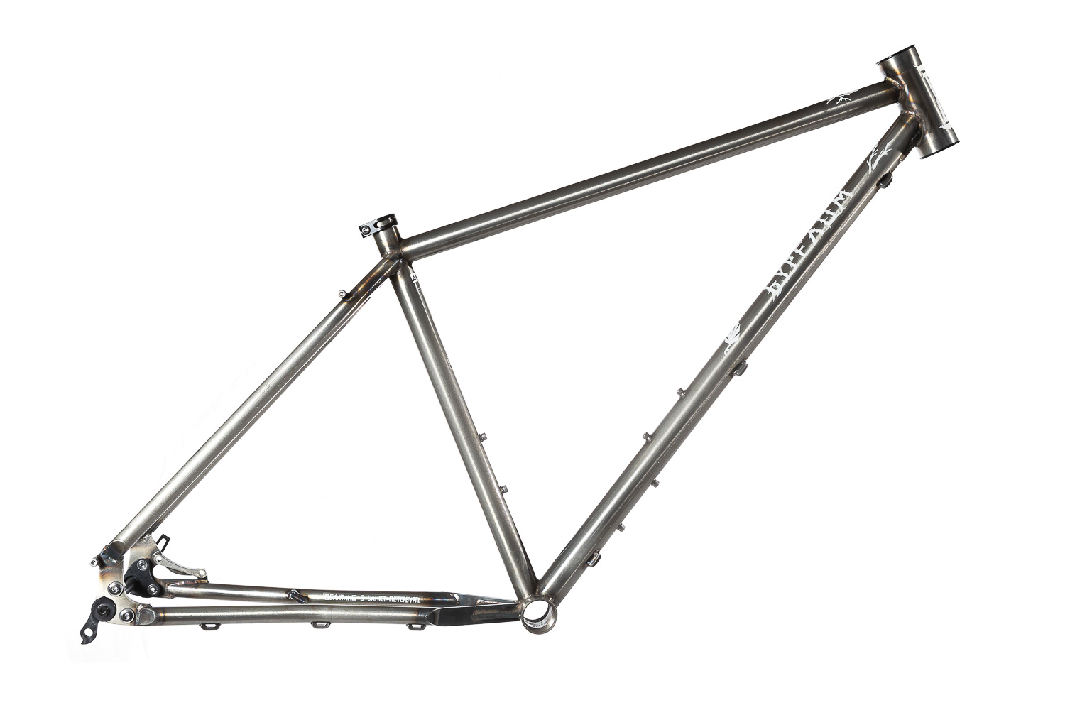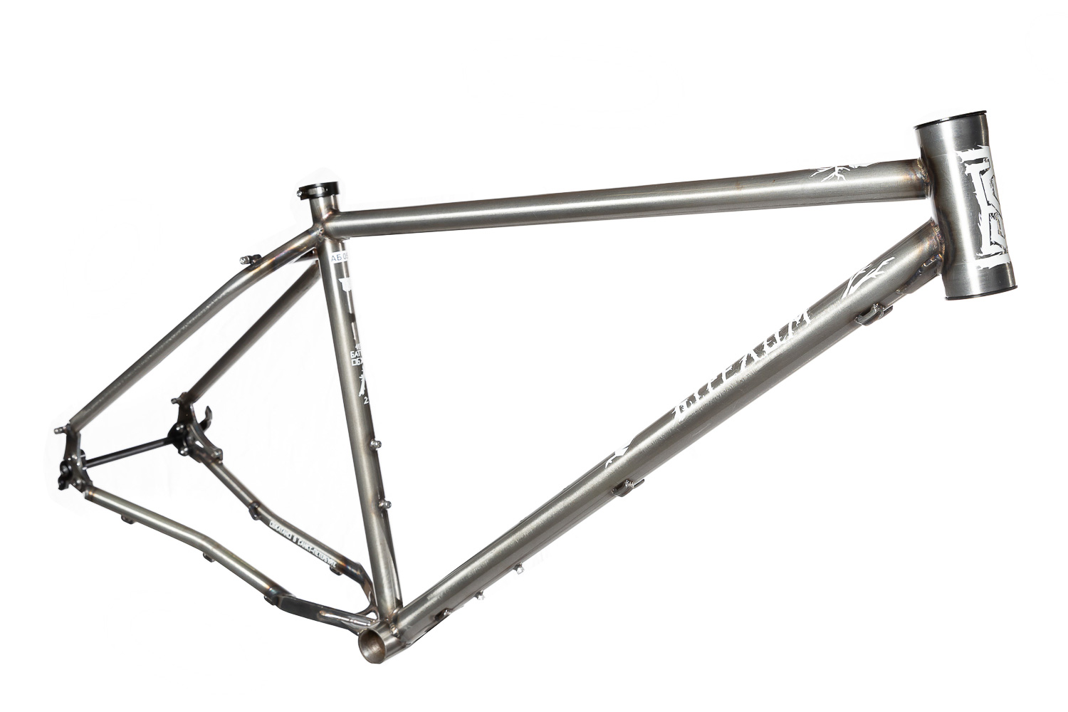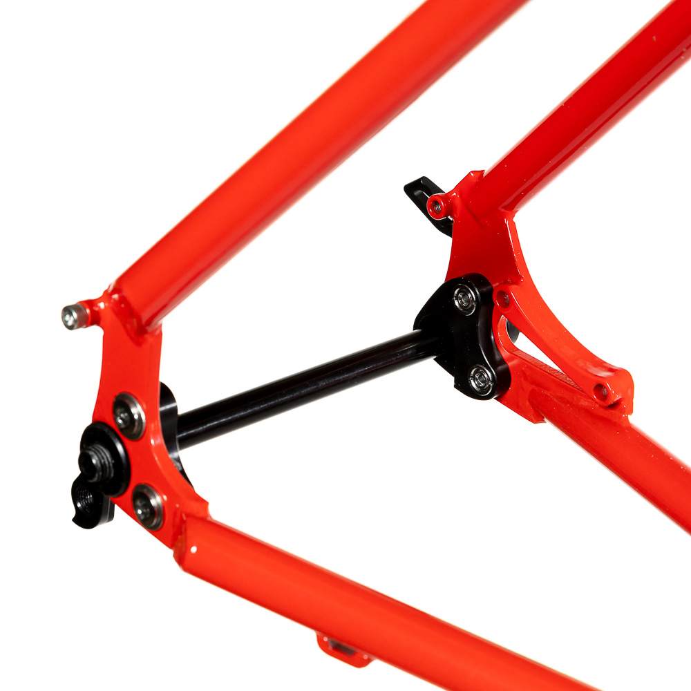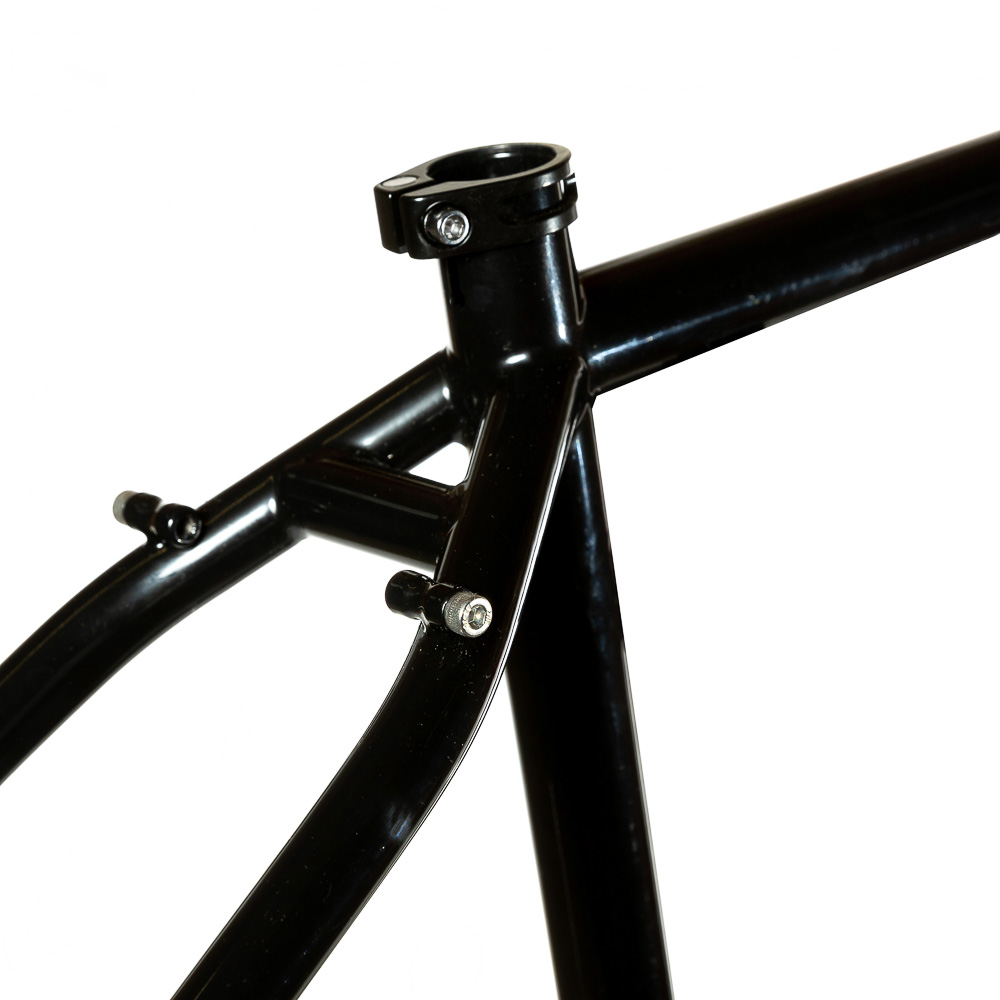 Рама для любителей туризма и приключений, сделанная в России для наших суровых погодных и дорожных условий. Такой стиль катания сейчас называют модным словом «адвенчур». В это понятие входит очень много чего, вплоть до легких трейлов. В нашем случае это рама не для экстрима, но легкий трейл без дропов на него можно проехать с удовольствием. Рассчитана она под установку жесткой вилки с высотой 485 мм, такую мы продаем отдельно. Можно ставить и аммо вилку с ходом 100 мм. Зазоры позволяют с уверенностью поставить резину 29х2,8, а в отдельных случая даже 3,0 в зависимости от ширины обода, но зазоров будет уже маловато. На раме имеются крепления под багажник на верних перьях и дропаутах, что увеличивает прочность этого узла. Также все крепления приварены, а не припаяны, так что их не оторвет с куском трубы. Сами трубы это микс из проката для разных дисциплин. Сделано это для увеличения жесткости, прочности и наката вашего велосипеда. Передний треугольник сделан из дважды и трижды баттированных кастом труб хромо 4130 с термообработкой, рулевой стакан стандарта zs44, а точнее в сток рама поставляется с рулевой ec44 под шток 1.1/8, а при замене нижней чашки на ex44 устанавливается вилка с коническим штоком. Задний треугольник сделан из труб, которые мы используем для BMX велосипедов и это феноменально улучшает жесткость рамы и ее накат. Подкова имеет симметричную форму и внушительные зазоры, при этом оставаясь в рамках BSA каретки шириной 73 мм. Подседельная труба имеет диаметр 29,8 мм под штырь 27,2 мм. Дропауты под boost 148x12 мм со сквозной осью. Зажим, дропауты, ось и рулевая под 1.1/8 поставляются в комплекте с рамой. Сами дропауты мы изобрели, опираясь на опыт клиентов нашей мастерской. Мы просто собрали воедино пазл из обломков дропаутов и рам, которые нам приносят на ремонт и сделали свои дропауты на века. Это 5 мм стальной лист с опорным креплением для съемных, фрезерованных алюминиевых вставок с фиксаторами на двух бонках. Таким образом мы ушли от стыка алюминиевой оси в стальном дропауте, что часто приводит к закисанию оси. Также обилие металла, как на раме, так и на самих дропаутах защищает их от глупых поломок.