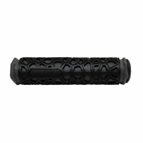 Комфортные резиновые грипсы H106 на руль велосипеда. Изготовлены из резины, имеют рельефную поверхность в форме паутины. Обеспечивают удобный хват руля, гасят удары и вибрации, предотвращают проскальзывание рук на руле. Длина ручек – 130 мм.