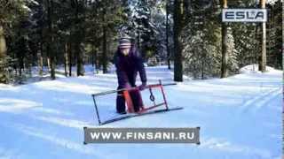 Финские сани Esla T7 изготовлены из экологически чистых, прочных, легких материалов. Это складная модель, предназначенная для взрослых ростом более 170 см, весом до 180 кг. Полозья сделаны из оцинкованной пружинной стали, не подверженной коррозии. Этот металл рассчитан на катание по твердому снегу, пресноводному или морскому льду. Для удобной постановки ног сверху на полозья нанесено нескользящее покрытие из прорезиненного пластика.