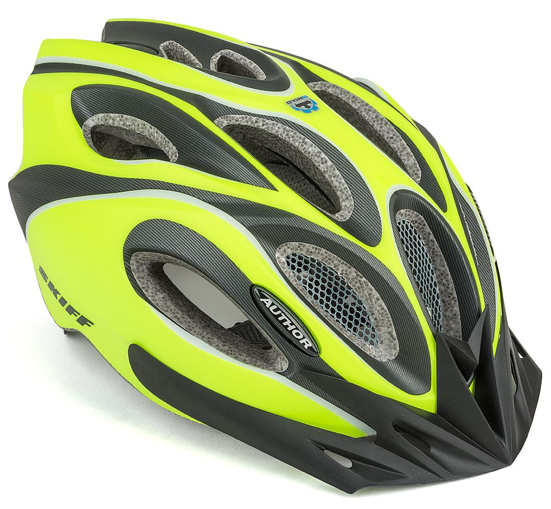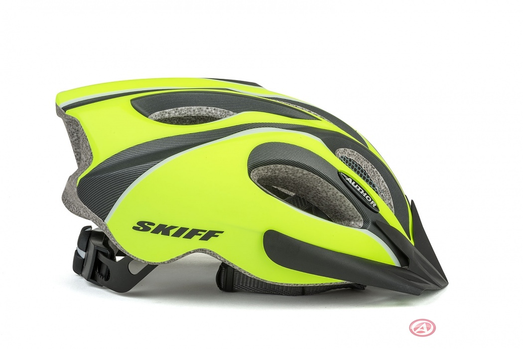 Спортивный велошлем со съемным козырьком AUTHOR SKIFF сочетает в себе отличную функциональность, стильный дизайн и доступную стоимость. Этот изготовленный по самым современным технологиям шлем, сможет обеспечить его владельцу самый высокий уровень безопасности. Защитная оболочка шлема впаяна в основу по технологии InMold, что гарантирует очень высокую прочность и позволяет сделать шлем легким, его вес всего 271 г. Регулируемая застежка системы Author DialFit обеспечивает удобное и легкое крепление шлема, а также его надежную фиксацию на голове. Вентиляция головы осуществляется через 14 больших отверстий, защищенных сеточкой от насекомых.