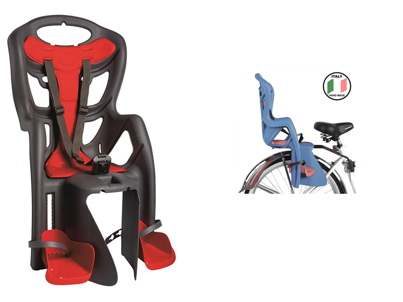 Качественное велосипедное сиденье-кресло для Вашего ребенка по доступной цене, модели Pepe, от итальянского бренда BELLELLI, с задним креплением на подседельный штырь. Производя детские вело сиденья, компания Bellelli опирается на строгие европейские стандарты качества. Кресло рассчитано на перевозку детей возрастом до 7 лет, весом до 22 кг. Кресло отличается инновационным дизайном, а также высоким уровнем безопасности, надежности и комфортности. Основой кресла служит очень прочный и гибкий полимерный корпус, который опирается на гибкую вилку из стали, которая отлично амортизирует вибрацию и обеспечивает защиту спины малыша. За безопасность малыша отвечают регулируемые страховочные ремни, а также специальные бортики ограничители, защищающие ноги ребенка от попадания в спицы. Комфорт обеспечивается мягкой подкладкой, регулируемыми по высоте подножками, а также другими регулировками по росту ребенка. Кресло подходит к большинству взрослых велосипедов.