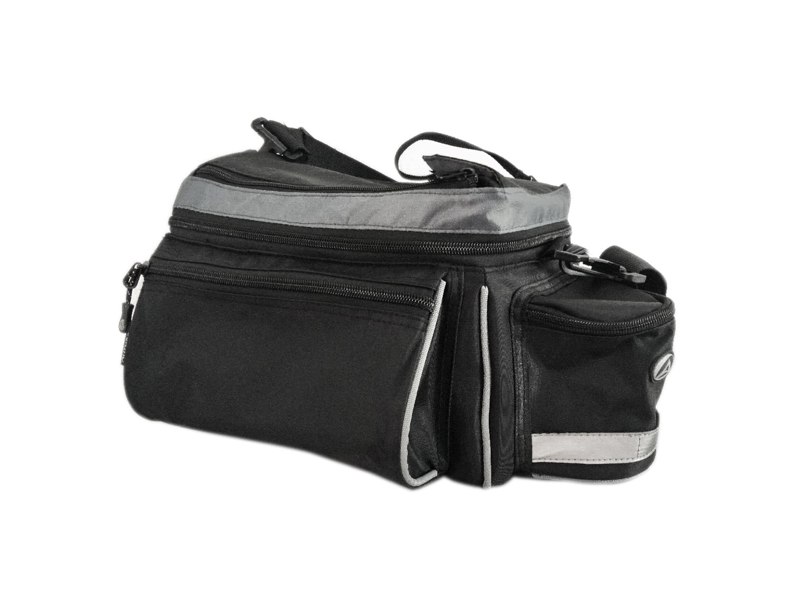 Небольшая, но очень удобная и практичная велосипедная сумка, от именитого чешского производителя AUTHOR, модели A-N 216, объемом 7-9 литров. Эта сумка крепится с помощью универсального крепления на любой тип велосипедного багажника. Изготовлена сумка из водоотталкивающего высококачественного материала и оснащена светоотражающими элементами, которые повышают заметность велосипедиста на дороге в темное время суток. Она рассчитана на перевозку небольшого количества вещей и аксессуаров, например зеркального фотоаппарата. Укрепленные стенки пригодятся для аксессуаров, требующих бережной перевозки. Также, предусмотрены дополнительные карманы для мелких предметов, фляги и карты. Плечевой ремень позволит удобно донести сумку с грузом до места назначения после снятия с велосипеда. Размеры: 28х14х17 см, вес 480 г.