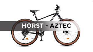 Велосипед Horst Aztec 29 2024 – алюминиевый (сплав 6061) кантрийный байк-найнер на 29-дюймовых колесах. Он комплектуется амортизационной вилкой Horst с механической блокировкой, что повышает комфорт и управляемость на неровных трассах. Трансмиссия Shimano Deore на 10 скоростей (1x10) полупрофи уровня с диапазоном 11-46 зубьев и ведущей звездой-неспадайкой на 32 зубца. За эффективное торможение отвечают гидравлические дисковые тормоза Shimano MT200. Колеса на втулках с промподшипниками и двойными ободами выдержат существенные нагрузки и будут цепко держать байк на грунтовых сингл-треках благодаря резине Kenda шириной 2.2 дюйма.