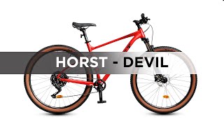 Велосипед Horst Devil 29 2024 – алюминиевый (сплав 6061) кантрийный байк на 29-дюймовых колесах. Он комплектуется амортизационной вилкой SR Suntour XCM с гидро-блокировкой, что повышает комфорт и управляемость велосипеда на неровных дорогах и трассах. Трансмиссия Shimano Deore на 10 скоростей (1x10) полупрофи уровня с диапазоном 11-46 зубьев и ведущей звездой на 32 зубца. За эффективное торможение отвечают гидравлические дисковые тормоза Shimano MT200, позволяют четко дозировать усилие торможения. Большие 29-ти дюймовые колеса на втулках с промподшипниками и двойными ободами легче преодолевают препятствия на ухабистых тропах и неровных дорогах.