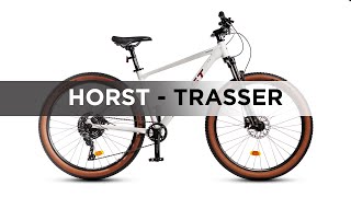 Велосипед Horst Trasser 2024 – алюминиевый кантрийный байк на 27.5-дюймовой резине. Он комплектуется амортизационной вилкой SR Suntour XCM, HLO с гидравлической блокировкой. Трансмиссия Shimano Deore на 10 скоростей (1x10) полупрофи уровня с диапазоном 11-46 зубьев и ведущей звездой-неспадайкой на 32 зубца. Гидравлические дисковые тормоза Shimano MT200 – классика для среднего ценового сегмента. Прочные колеса на втулках с промоподшипниками и двойных ободах с резиной Kenda выдержат существенные нагрузки и будут крепко держать байк на грунтовых сингл-треках.