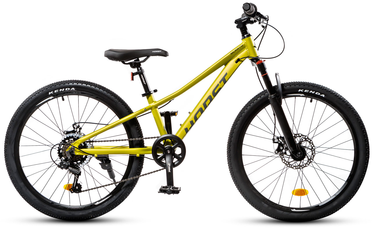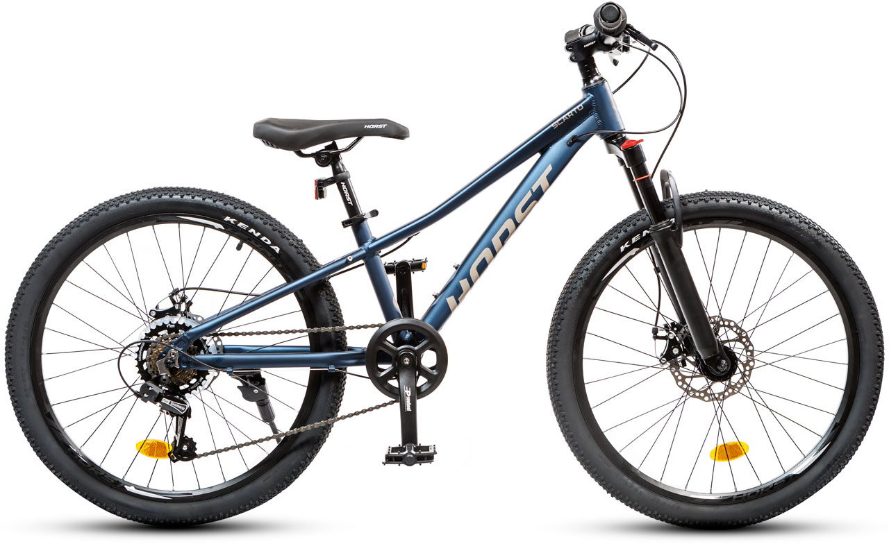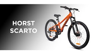 Подростковый горный байк Horst Scarto 2025 предназначен для юных покатушечников и спортсменов, предпочитающих несложное катание в городе, в парках и на даче. Легкая алюминиевая рама из сплава 6061, амортизатор для увеличения комфорта и управляемости. 24-дюймовые колеса собраны на прочных двойных ободах и обуты в широкую для такого диаметра колес резину Kenda шириной 2.1 дюйма. Трансмиссия на 7 скоростей – уровня Shimano Tourney. Дисковые механические тормоза Yinxing обеспечивают хорошую мощность торможения в любых дорожных условиях.