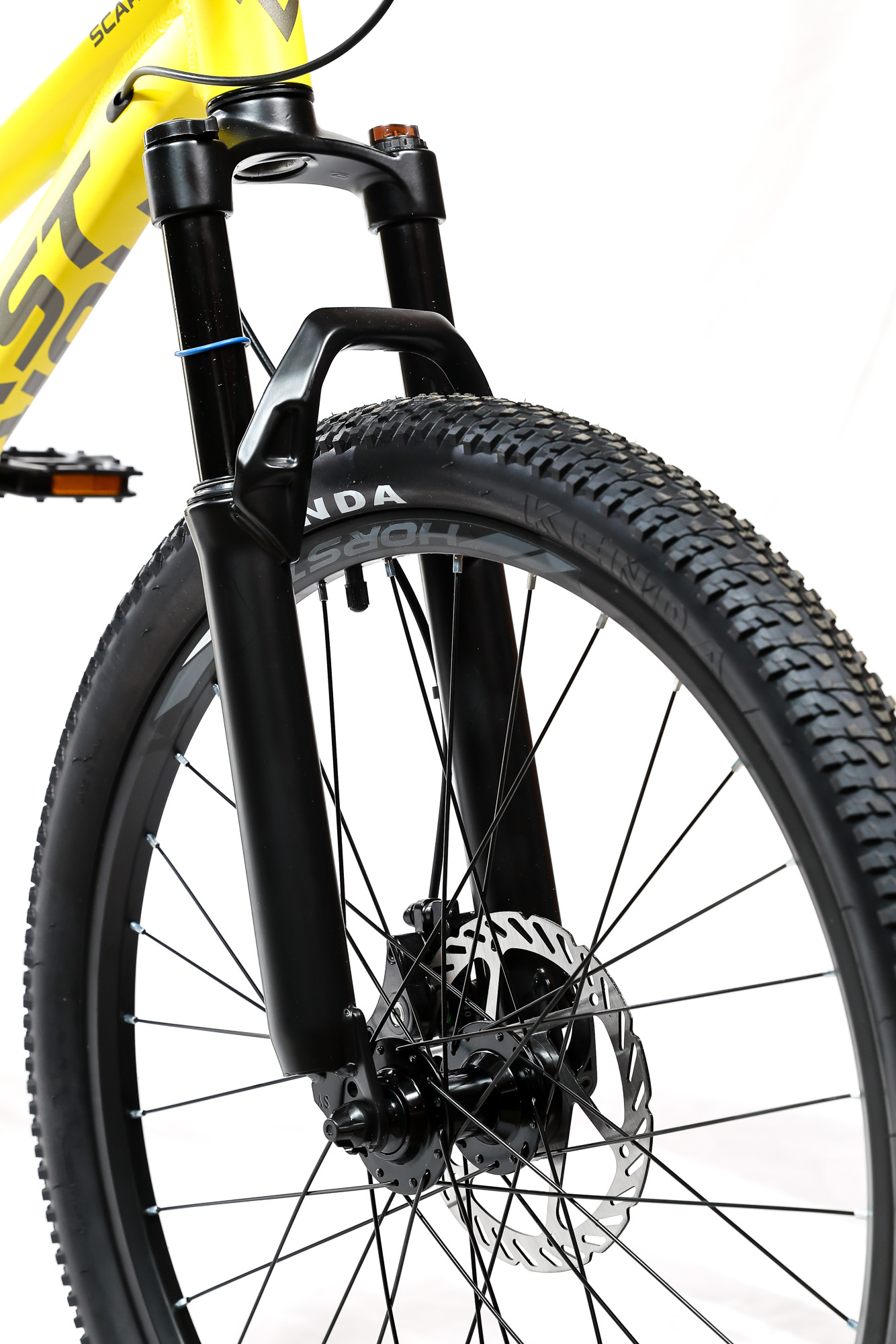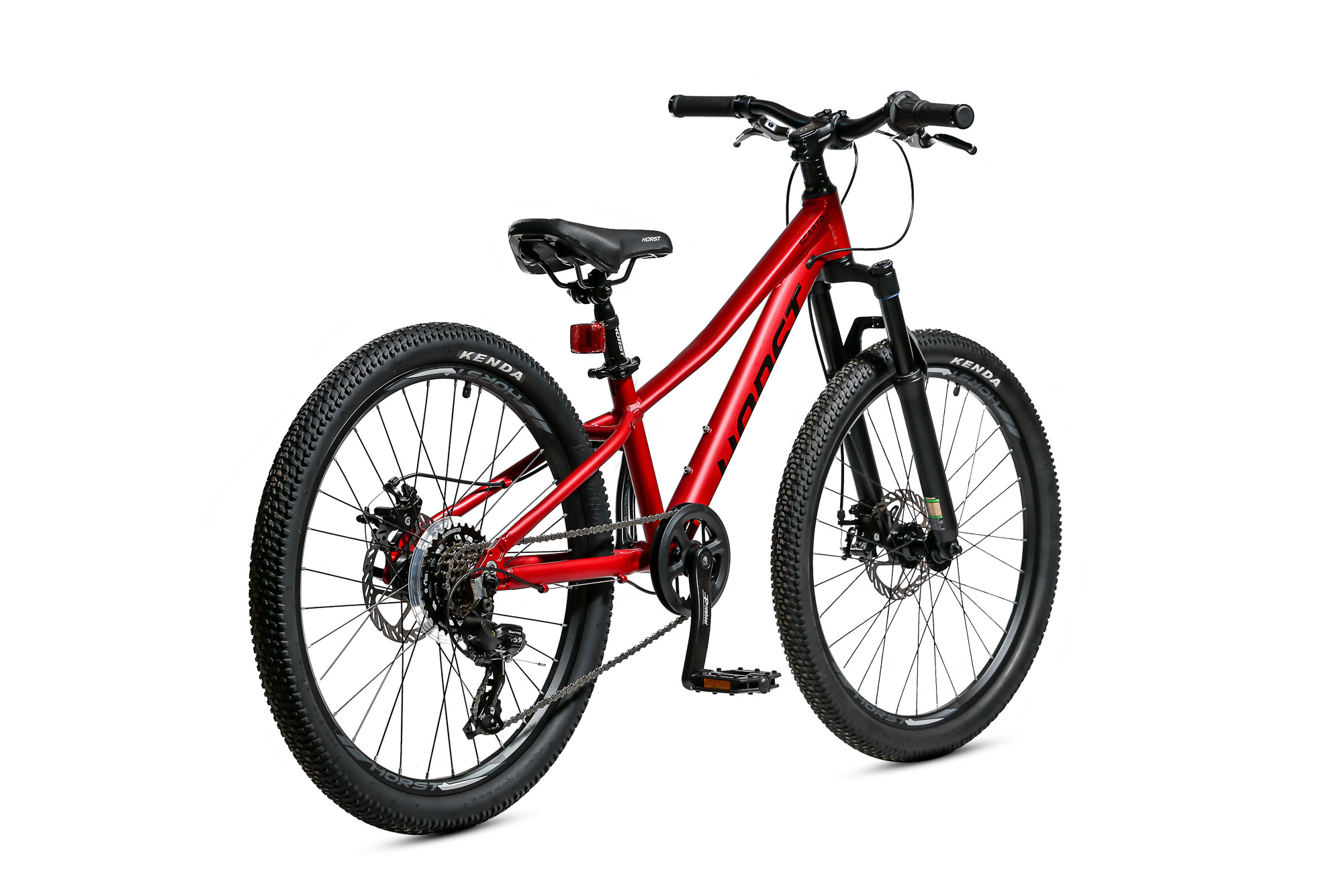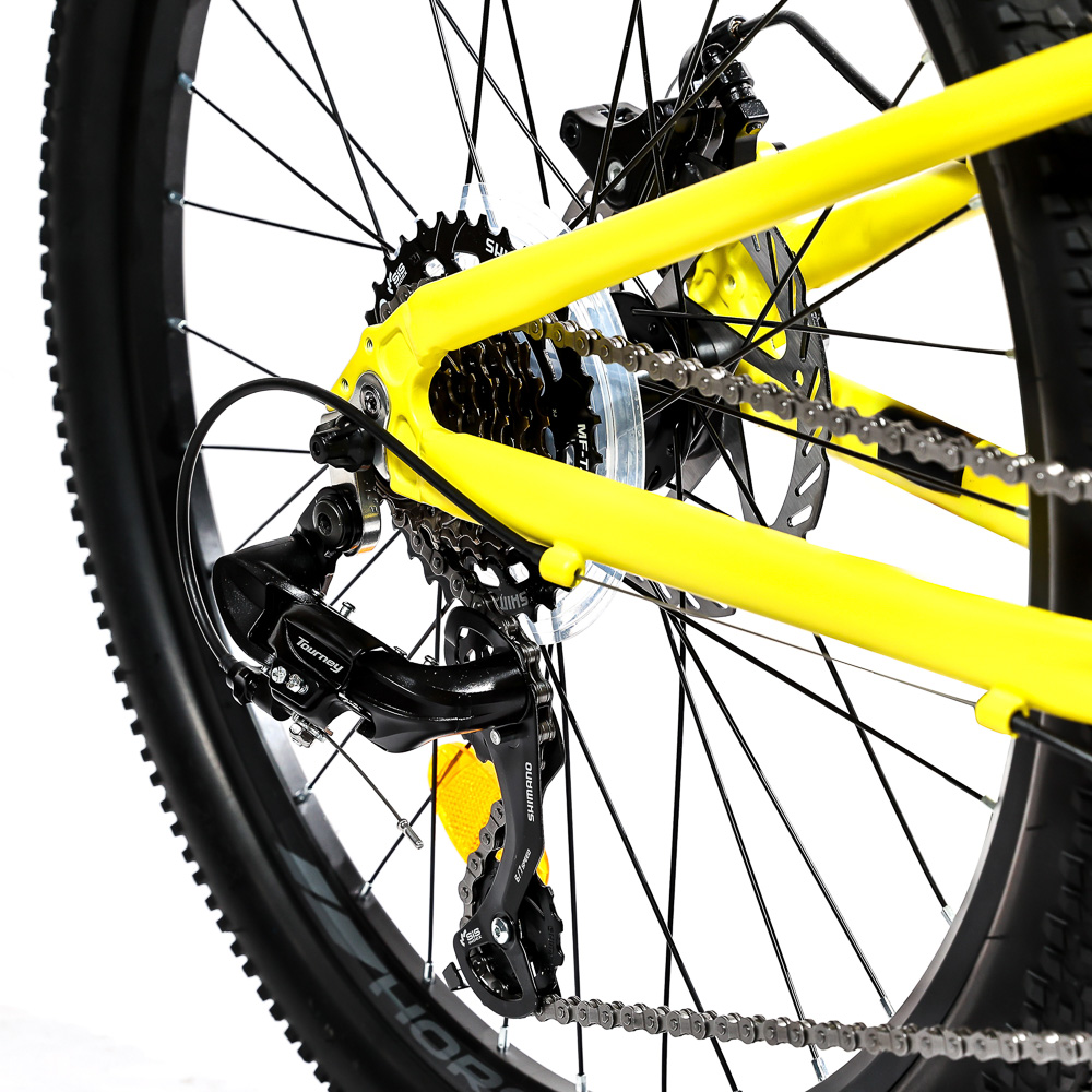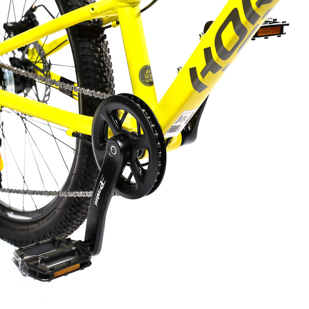 Подростковый горный велосипед Horst Scarto 2026 предназначен для юных катальщиков и спортсменов, предпочитающих несложное катание в городе, в парках и на даче. Легкая алюминиевая рама из сплава 6061, амортизатор для увеличения комфорта и управляемости. 24-дюймовые колеса собраны на прочных двойных ободах и обуты в широкую для такого диаметра колес резину Kenda шириной 2.1 дюйма. Трансмиссия на 7 скоростей – уровня Shimano Tourney. Дисковые механические тормоза Yinxing обеспечивают хорошую мощность торможения в любых дорожных условиях.