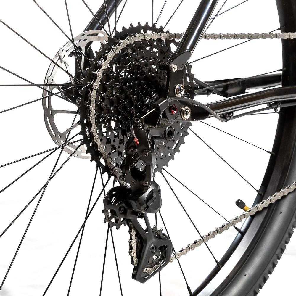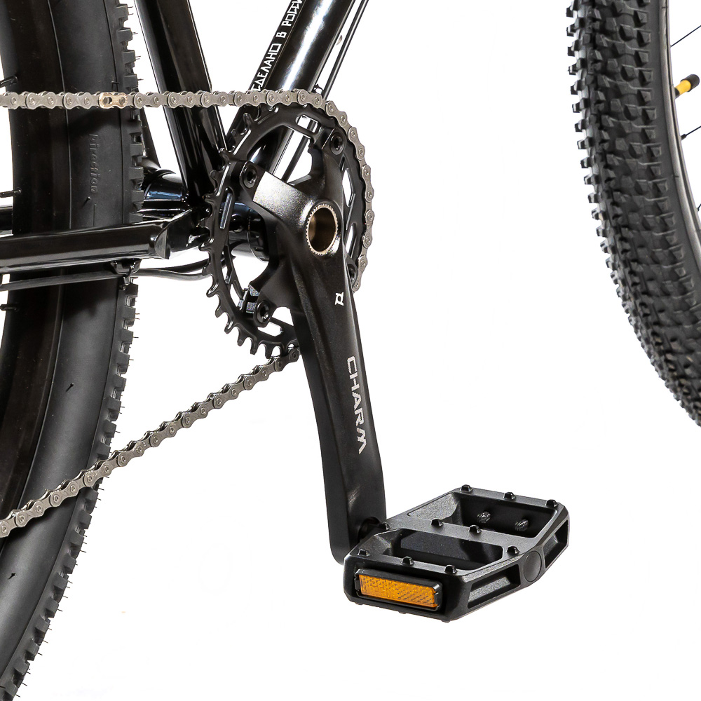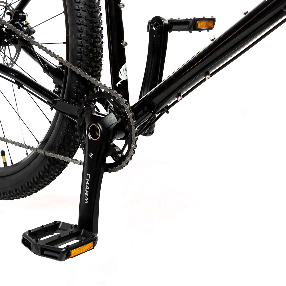 жесткая CrMo 4130 Boost 15x110, с тремя бонками на каждой ноге и с креплением багажника на дропаутах