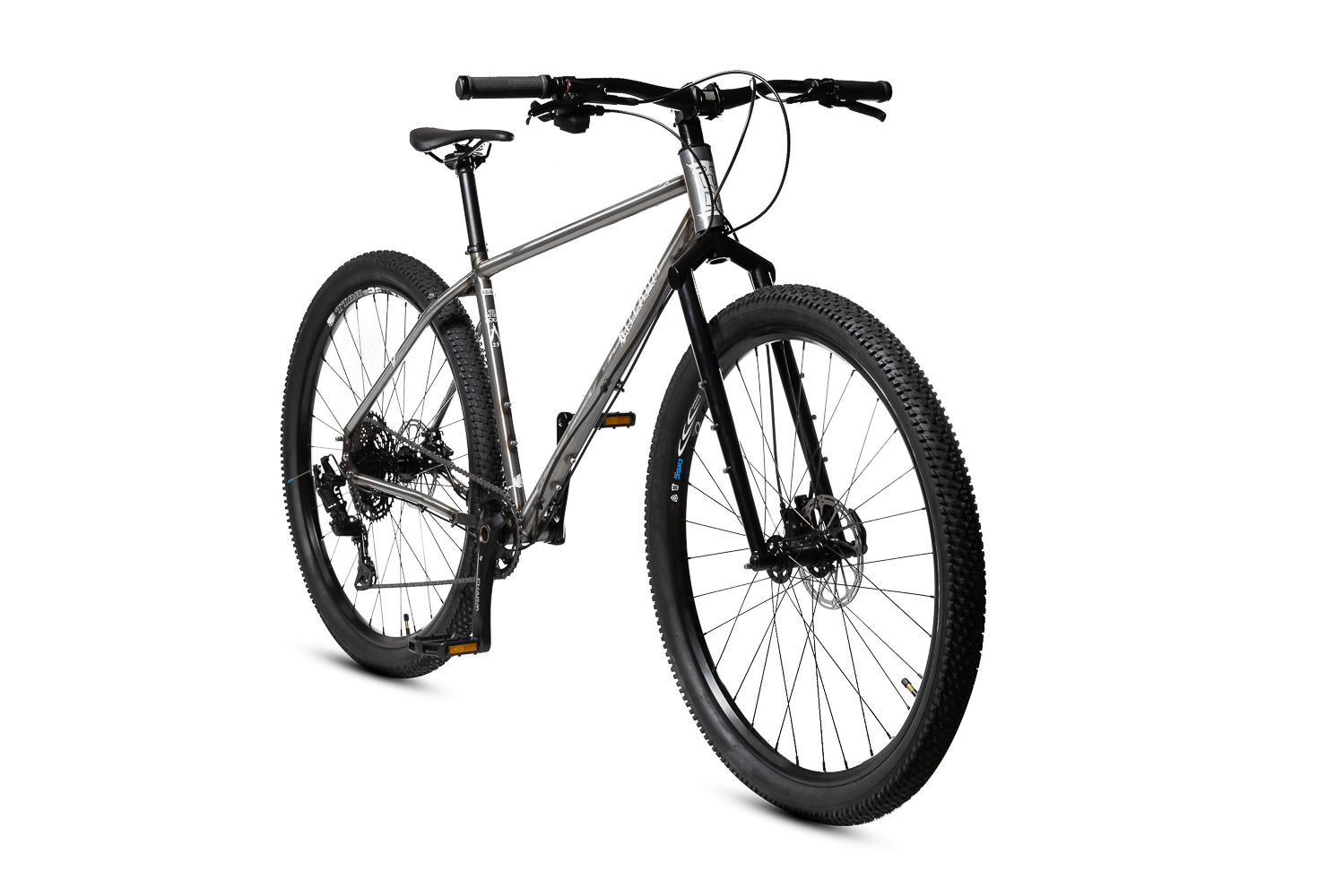 Приключенческий стальной велосипед для туринга в категории adventure. Фреймсет сделан в России, Санкт-Петербург, из премиум труб CrMo 4130 с мульти баттингом и термообработкой отдельных узлов. Крепление для фляг на подседельной трубе, с двух сторон на нижней. Крепление багажника на раме под большие нагрузки — нижние бонки приварены к дропаутам. Подкова с усилением и максимальной шириной резины 2.8" для 29-дюймового колеса. Вилка жесткая CrMo 4130 Boost 15x110. Вилка с тремя бонками на каждой ноге и с креплением багажника на дропаутах. Шток 1.1/8. Зазор для 29 дюймового колеса до 3.0 дюйма. Два размера: M и L.