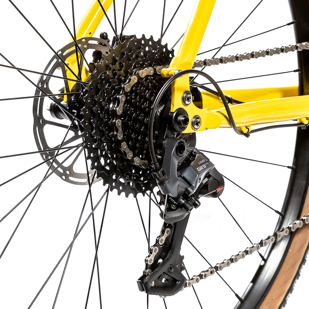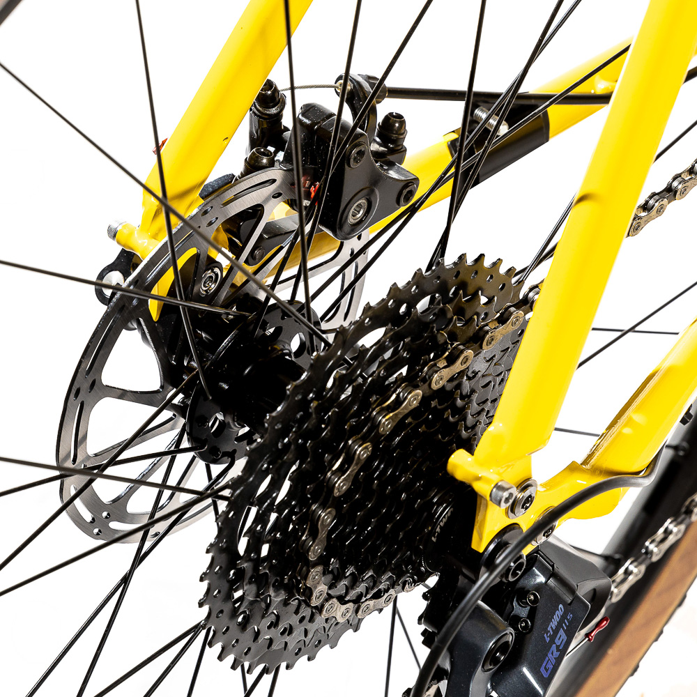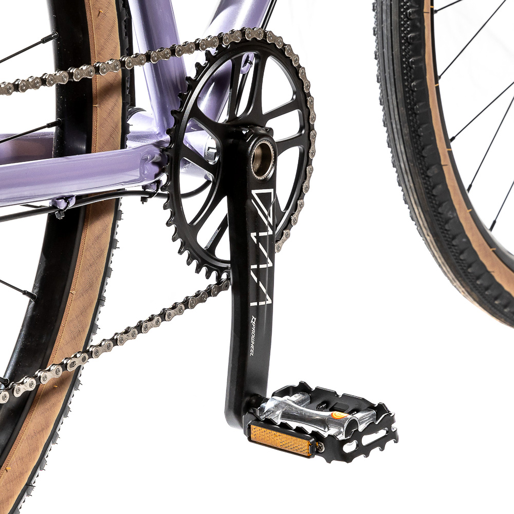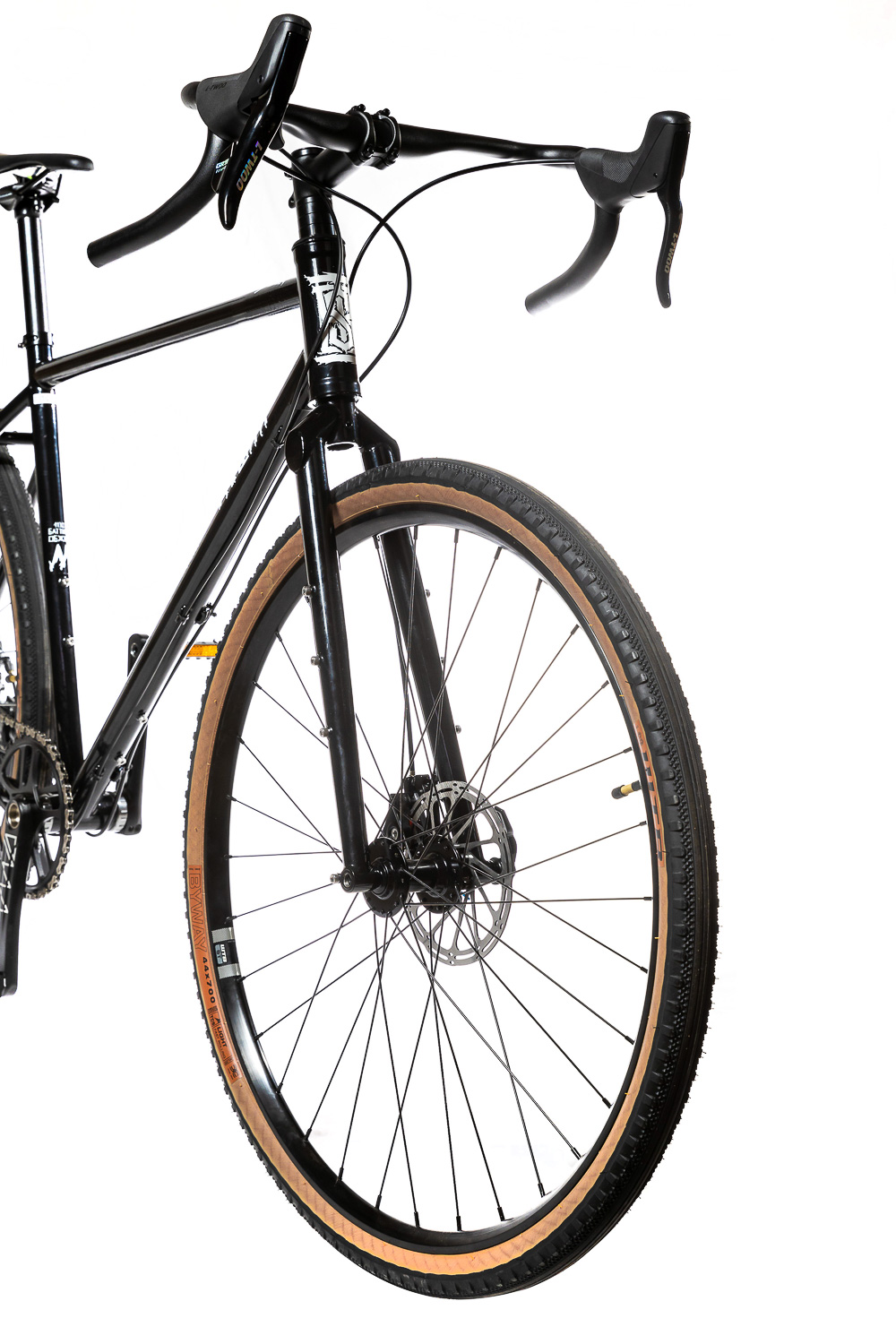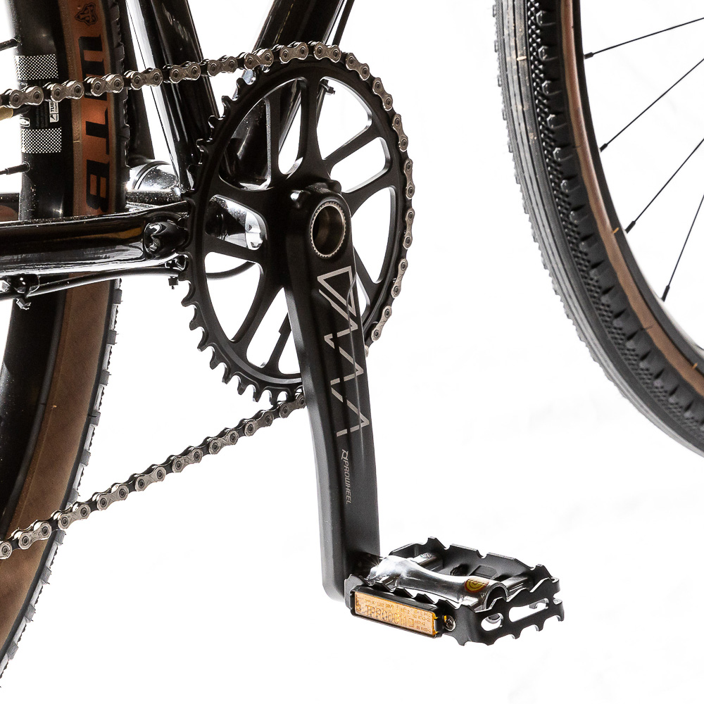 Гравиный велосипед с корнями из горного велосипеда. Чистокровный гравийник всегда ближе к дорожному велосипеду: он тонкий — трубы маленького диаметра, тоненькие и это приводит к снижению прочности и жесткости рамы, а значит к потере наката. Также грвийные рамы на трубах с небольшим диаметром не любят столкновения, что чаще всего приводит к смерти переднего треугольника. С этим мы решили поработать основательно и сделали рамы из смеси гравийных и трюковых труб сплава хромо 4130 с термообработкой. В результате тестов и сравнений мы получили раму с очень жестким кареточным узлом и как следствие ощутимо повысили накат велосипеда. Прочность, жесткость и накат — вот что сразу заметно на Лешем. Размерная сетка представлена в трех вариантах: 52 (S/M), 54 (M/L) и 56 (L/XL). С ростом 183 см оптимально кататься на 54. Рама «большемерит». В 54 и 56 размерах в раму можно поставить покрышки до 2,1 дюйма. В 52 размер 1,8 дюйма из-за более коротких перьев. Передний треугольник сделан из дважды и трижды баттированных кастом труб хромо 4130 с термообработкой, рулевой стакан стандарта zs44, а точнее в сток рама поставляется с рулевой ec44 под шток 1.1/8, а при замене нижней чашки на ex44 устанавливается вилка с коническим штоком. Задний треугольник сделан из труб, которые мы используем для BMX велосипедов и это феноменально улучшает жесткость рамы и ее накат. Есть крепление для переднего переключателя. BSA каретка шириной 73 мм. Подседельная труба имеет диаметр 29,8 мм под штырь 27,2 мм. Дропауты под 142x12 мм со сквозной осью. Сами дропауты мы изобрели, опираясь на опыт клиентов нашей мастерской. Мы просто собрали воедино пазл из обломков дропаутов и рам, которые нам приносят на ремонт и сделали свои дропауты на века. Это 5 мм стальной лист с опорным креплением для съемных, фрезерованных алюминиевых вставок с фиксаторами на двух бонках. Таким образом мы ушли от стыка алюминиевой оси в стальном дропауте, что часто приводит к закисанию оси. Также обилие металла, как на раме, так и на самих дропаутах защищает их от глупых поломок.