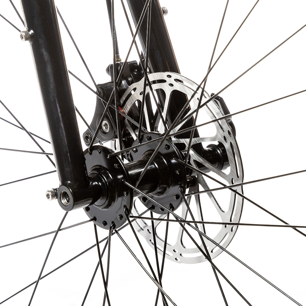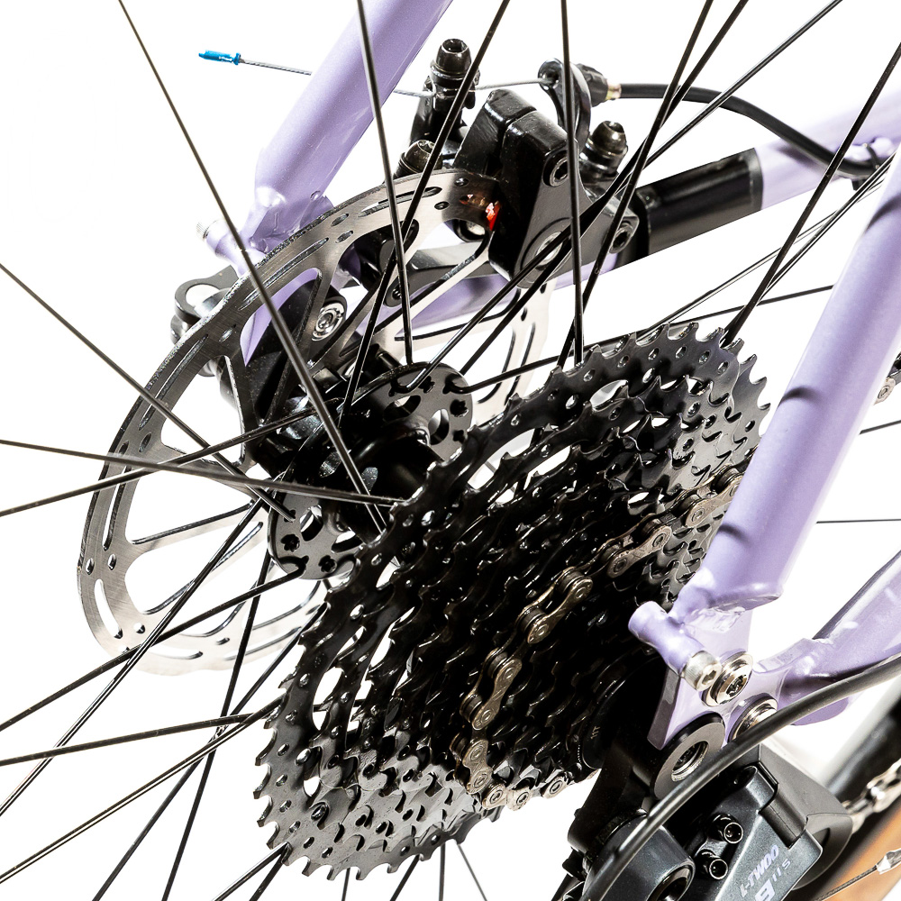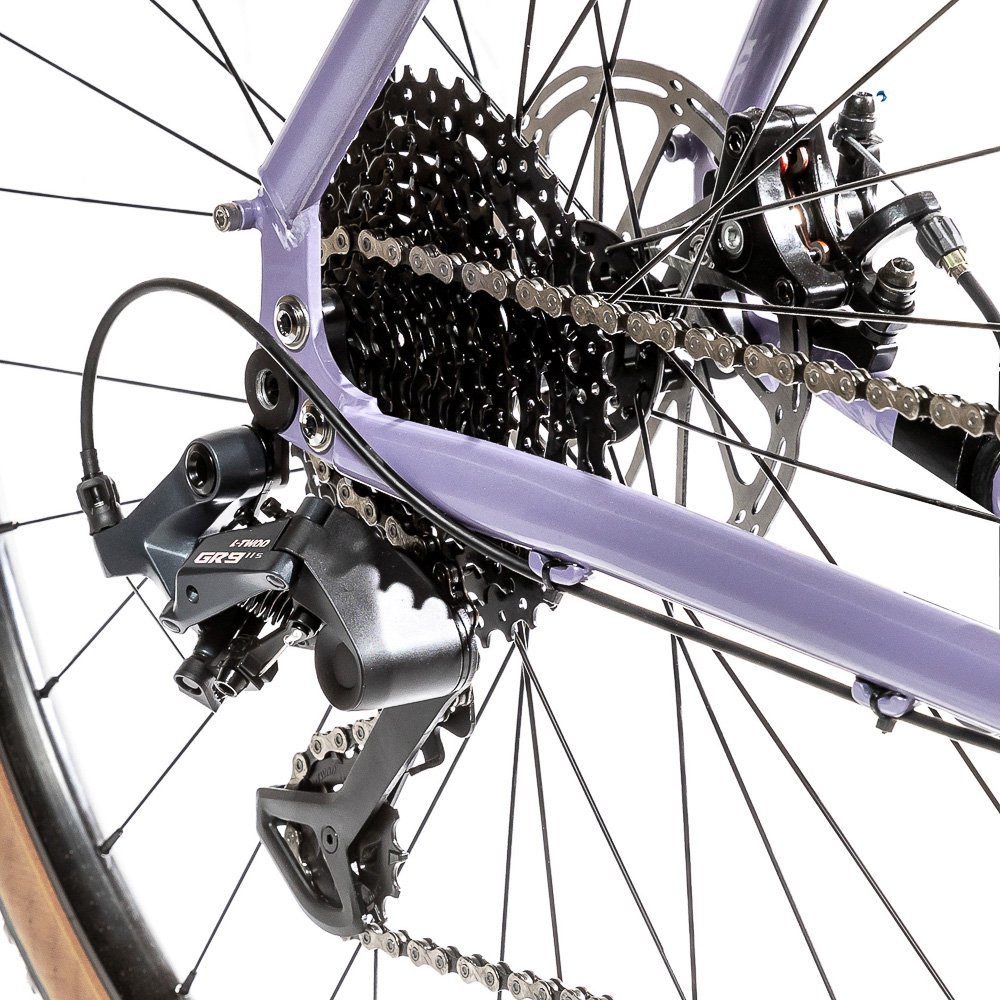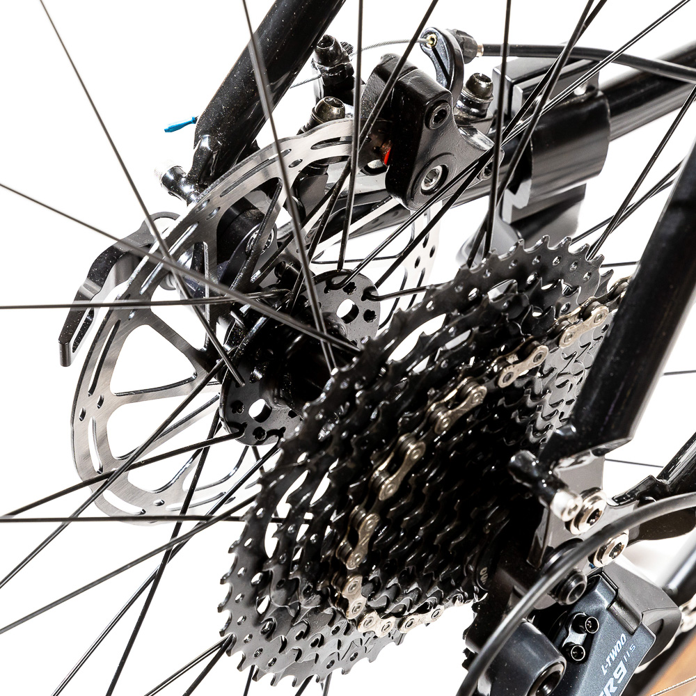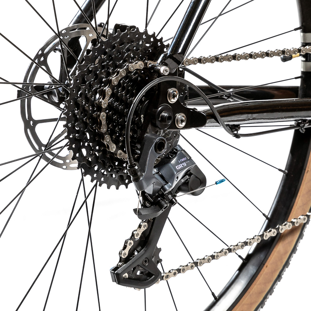 Гравиный велосипед с корнями из горного велосипеда. Чистокровный гравийник всегда ближе к дорожному велосипеду: он тонкий — трубы маленького диаметра, тоненькие и это приводит к снижению прочности и жесткости рамы, а значит к потере наката. Также грвийные рамы на трубах с небольшим диаметром не любят столкновения, что чаще всего приводит к смерти переднего треугольника. С этим мы решили поработать основательно и сделали рамы из смеси гравийных и трюковых труб сплава хромо 4130 с термообработкой. В результате тестов и сравнений мы получили раму с очень жестким кареточным узлом и как следствие ощутимо повысили накат велосипеда. Прочность, жесткость и накат — вот что сразу заметно на Лешем. Размерная сетка представлена в трех вариантах: 52 (S/M), 54 (M/L) и 56 (L/XL). С ростом 183 см оптимально кататься на 54. Рама «большемерит». В 54 и 56 размерах в раму можно поставить покрышки до 2,1 дюйма. В 52 размер 1,8 дюйма из-за более коротких перьев. Передний треугольник сделан из дважды и трижды баттированных кастом труб хромо 4130 с термообработкой, рулевой стакан стандарта zs44, а точнее в сток рама поставляется с рулевой ec44 под шток 1.1/8, а при замене нижней чашки на ex44 устанавливается вилка с коническим штоком. Задний треугольник сделан из труб, которые мы используем для BMX велосипедов и это феноменально улучшает жесткость рамы и ее накат. Есть крепление для переднего переключателя. BSA каретка шириной 73 мм. Подседельная труба имеет диаметр 29,8 мм под штырь 27,2 мм. Дропауты под 142x12 мм со сквозной осью. Сами дропауты мы изобрели, опираясь на опыт клиентов нашей мастерской. Мы просто собрали воедино пазл из обломков дропаутов и рам, которые нам приносят на ремонт и сделали свои дропауты на века. Это 5 мм стальной лист с опорным креплением для съемных, фрезерованных алюминиевых вставок с фиксаторами на двух бонках. Таким образом мы ушли от стыка алюминиевой оси в стальном дропауте, что часто приводит к закисанию оси. Также обилие металла, как на раме, так и на самих дропаутах защищает их от глупых поломок.