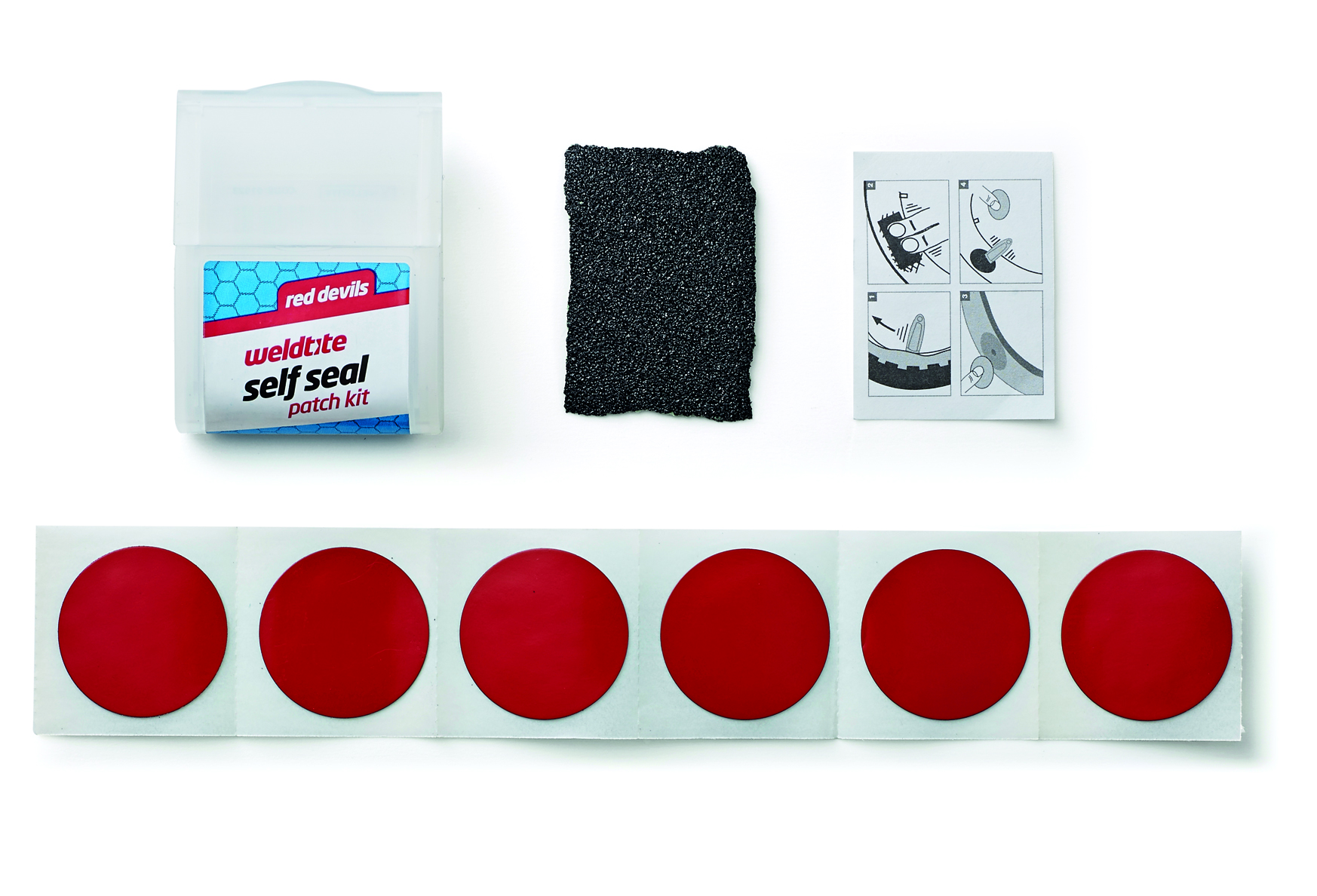 Велосипедная аптечка WELDTITE RED DEVIL 6 суперсамоклеек, шкурка