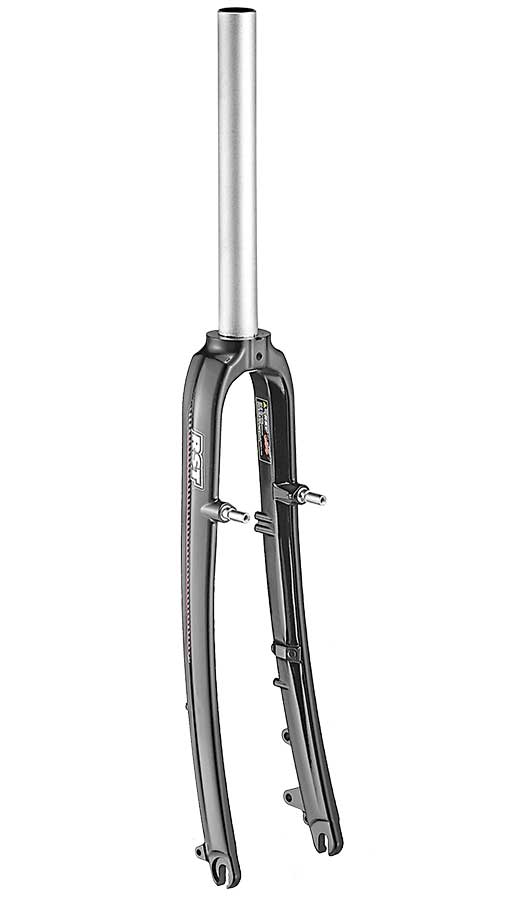 Очень легкая (0.75 кг) жесткая вилка для 26" колес с возможностью установки как ободных, так и дисковых и роллерных тормозов. Алюминиевый шток и магниевые перья.